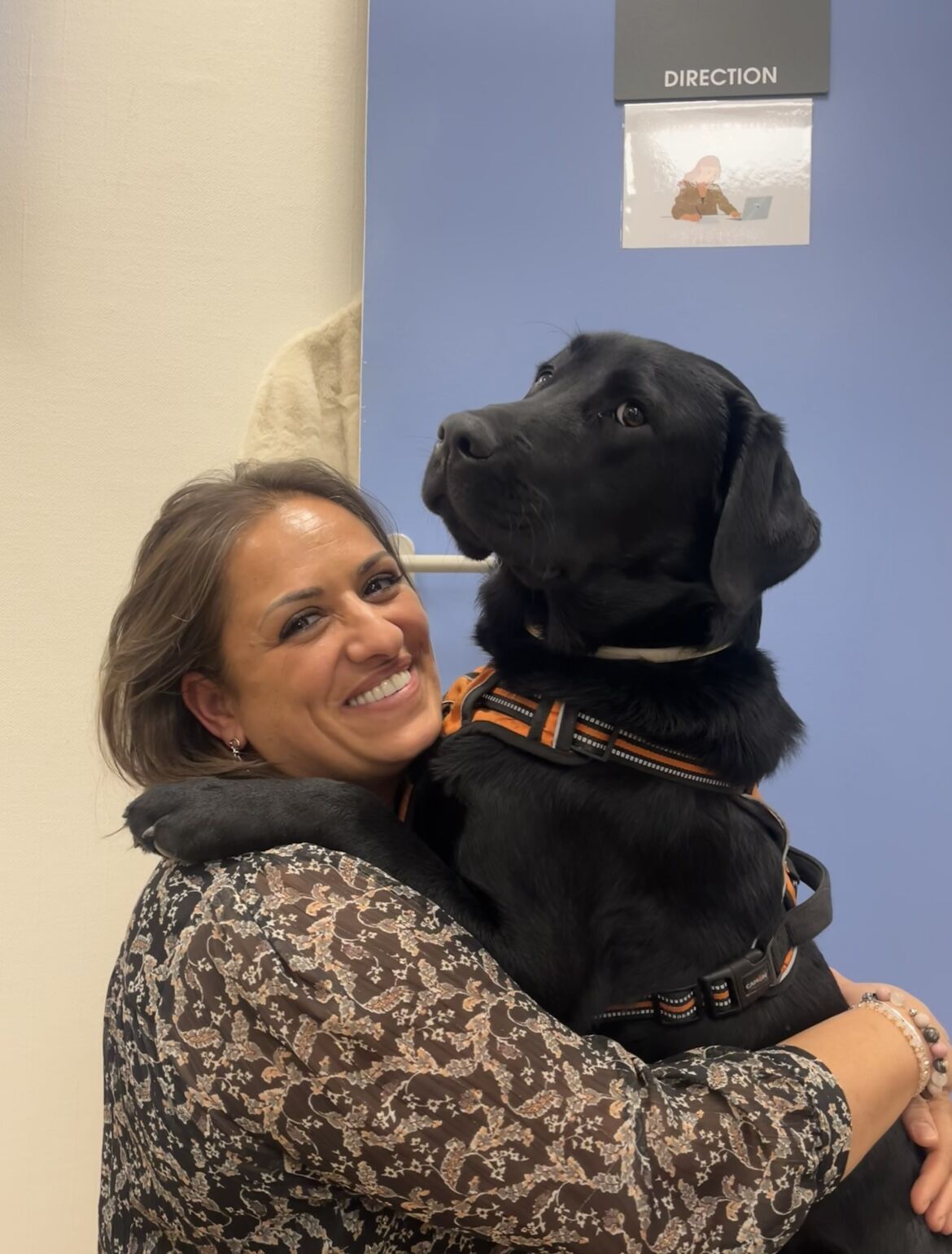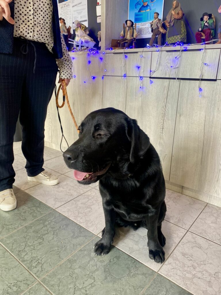 Aujourd’hui, il termine sa formation de chien guide et rejoint bientôt Lysiane, kinésithérapeute déficiente visuelle. Pendant 7 ans, il l’accompagnera au quotidien, lui offrant sécurité, autonomie et liberté de mouvement.